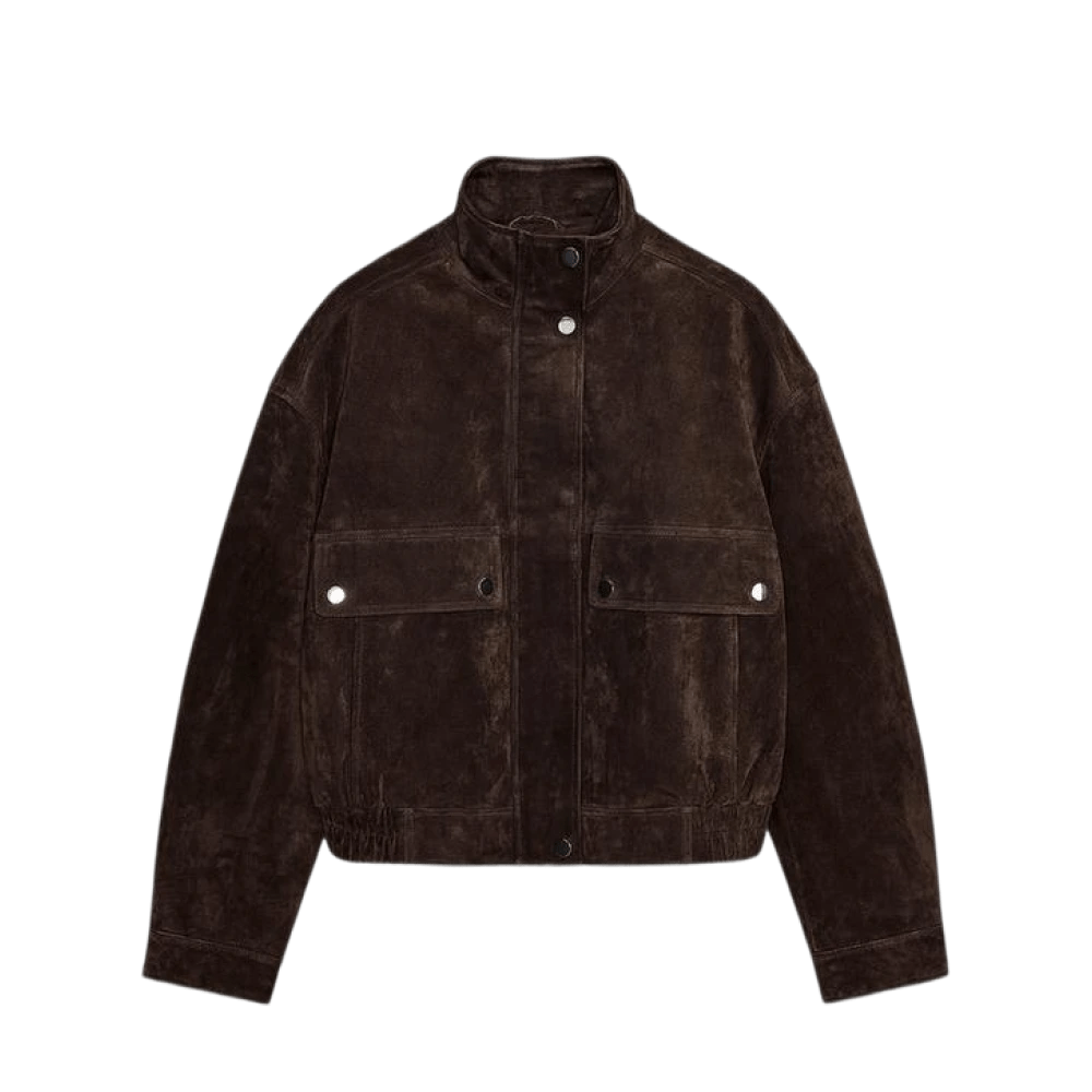 Elegancka i ponadczasowa kurtka bomberka od ZARA, wykonana w 100% z naturalnego zamszu. Idealna na chłodniejsze dni – świetnie sprawdzi się zarówno w stylizacjach casualowych, jak i bardziej eleganckich.